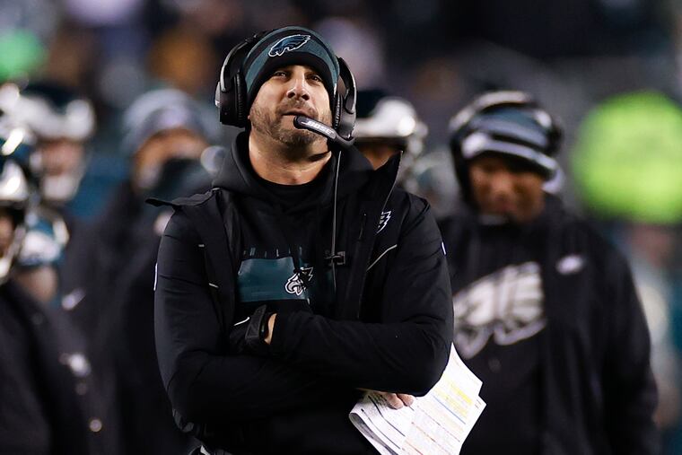 It starts up front, as they like to say. The Eagles’ offensive line was down to its third-string guards — Nate Herbig and Sua Opeta — and still didn’t miss a beat. The unit opened running lanes at will. If there were an award for assistant coach of the year, Eagles O-line coach Jeff Stoutland would have to warrant serious consideration. Year-in, year-out, injury after injury, he has had his reserves ready when called upon. But his run schemes — he’s also the Eagles’ run game coordinator — are unheralded.