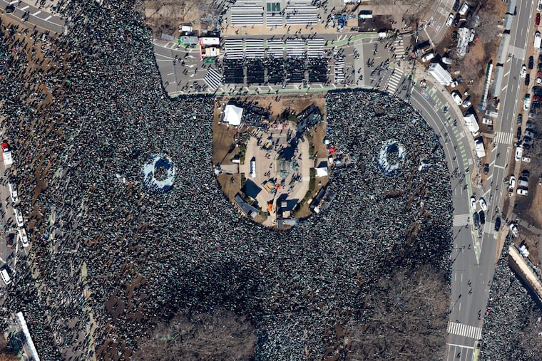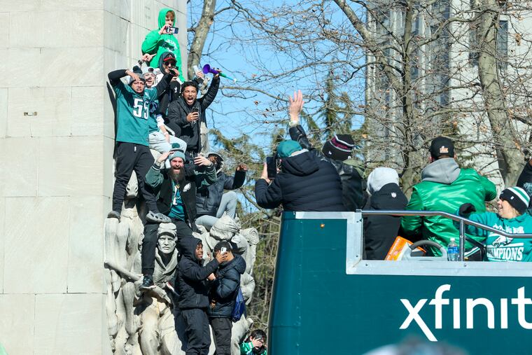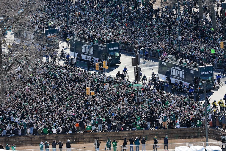 The Eagles’ Super Bowl parade is a daylong party as Philadelphians express their love for the Birds