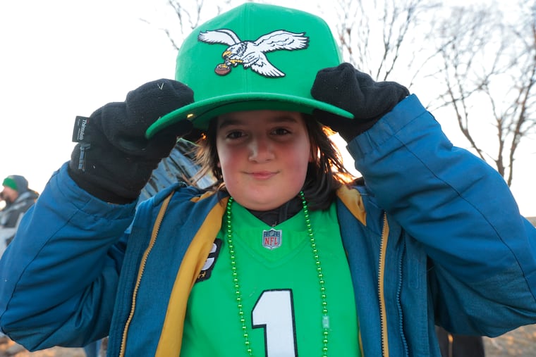 “Hot girls skip classes to see Jalen Hurts,” Williams-Bey, 18, of Connecticut, had written on her poster board (Technically, she clarified, university classes were canceled today for the celebrations).