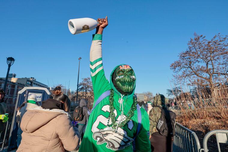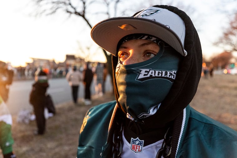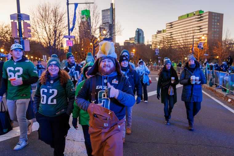 Fans donning jerseys over winter gear carried the essentials across the Spring Garden Street bridge: foldable chairs, blankets, and cases of Bud Light.