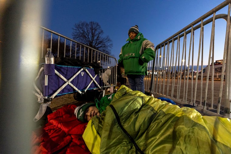 “My whole family’s excited. We’ve been Eagles fans our whole life,” a man named Ed from Perkasie, Pa. told Fox 29’s Steve Keeley Thursday night. Ed was set up outside the Philadelphia Museum of Art with a tent intended to house him and “seven or eight” more people who planned to show up overnight.