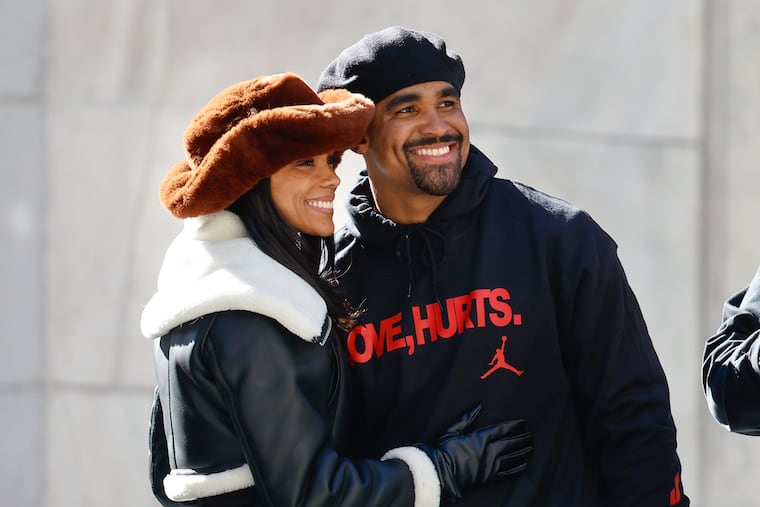 Even if it wasn’t Valentine’s Day, Temple University roommates Aniya Williams-Bey and Talear Morris would’ve been showing their love for Eagles quarterback Jalen Hurts and running back Saquon Barkley along the parade route.
