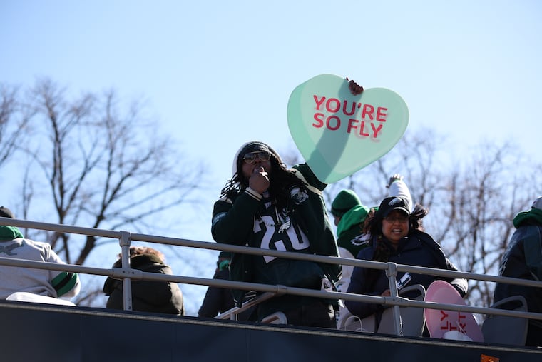 On a day set aside to honor the patron saint of love, it would be only too obvious to observe that the city and jubilant sports fans in Philadelphia delivered a four-hour adulatory valentine to the Super Bowl champion Eagles.