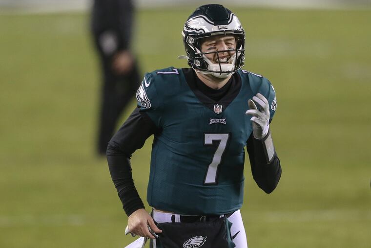 With nothing to play for except the No. 6 pick vs. the No. 9 pick, the Eagles did not dress 10 key players Sunday night. The most intriguing were running back Miles Sanders (knee) and tight end Dallas Goedert (calf), their two best offensive players. It would have been interesting to see if they’d have played had the Eagles remained in the playoff hunt. Suspiciously, on fourth-and-goal from the 4, coach Doug Pederson passed up a chip-shot field goal in the third quarter that would have tied the game at 17: “When you’re that close, stay aggressive.”