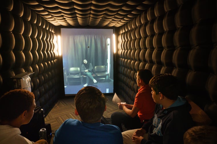 Akram, Bakri, and her four-legged friend were 5,750 miles away, inside the Palestinian territory — though it felt like they were in the room with the Philadelphia-area students and their teacher, Amy Holt Cline. They met inside a device called the Portal, a small inflatable room with a large video screen designed to foster vivid face-to-face interactions among people who’d find it impossible to connect in real life.
