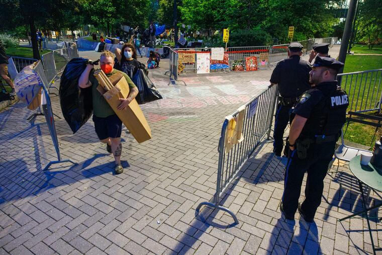 “For now, the encampment is closed,” an organizer told The Inquirer, but otherwise protesters declined comment.