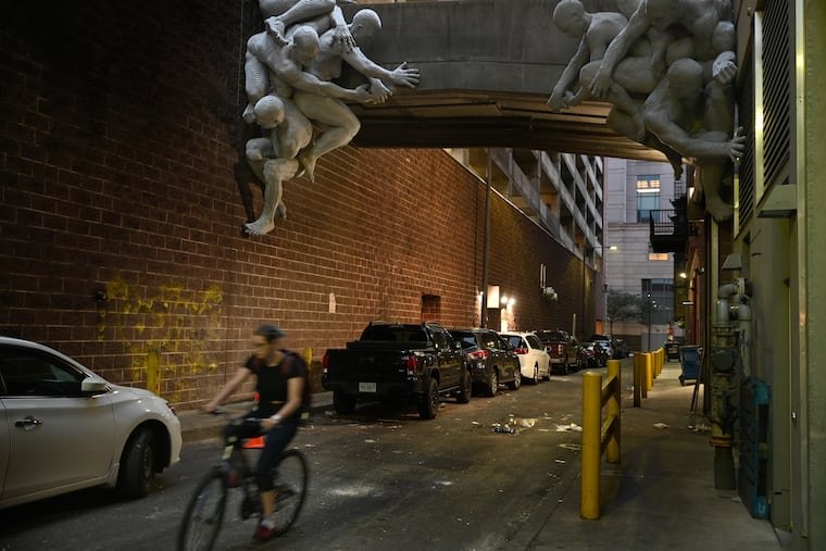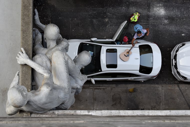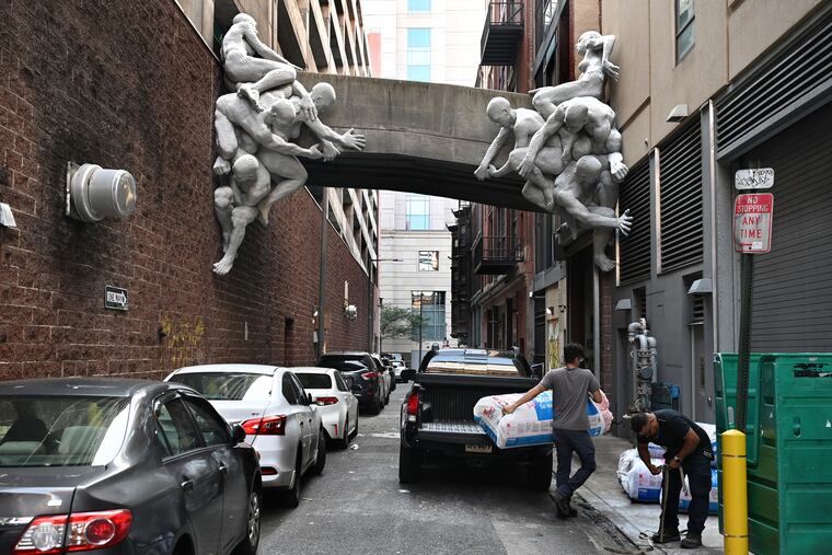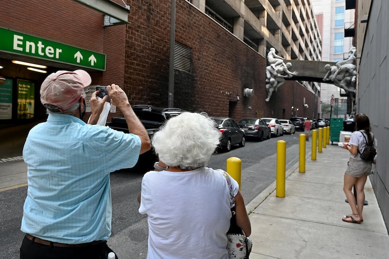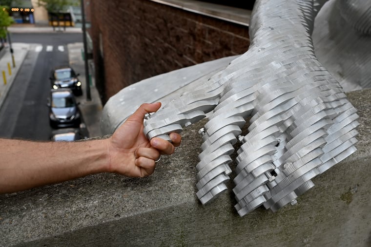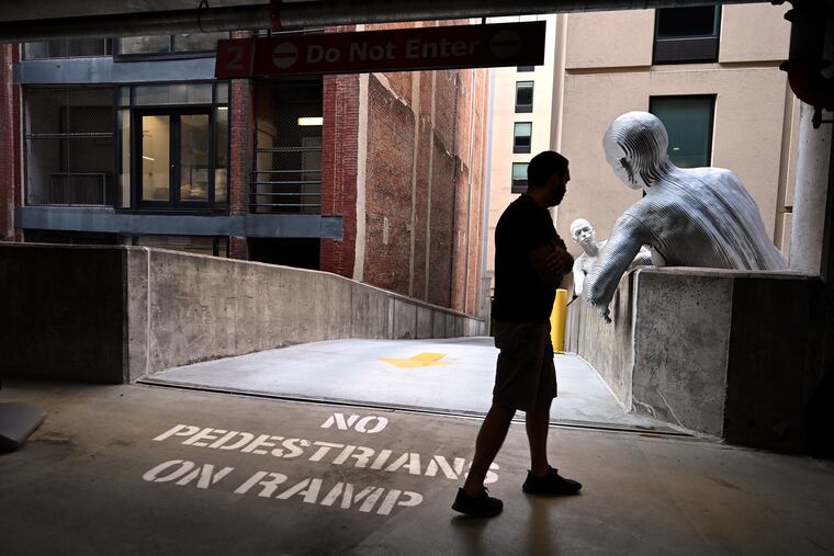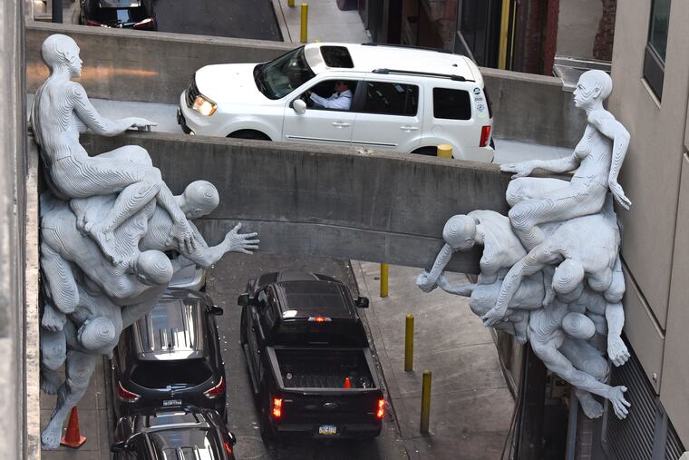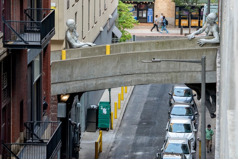 A finales de agosto, imágenes de la más reciente obra de arte público de Filadelfia se volvieron virales en las redes sociales cuando cientos de usuarios publicaron sobre la escultura de Miguel Antonio Horn: una estructura de ocho piezas que simulan figuras humanas, hecha de placas de aluminio, que flota a unos seis metros sobre el suelo, colgando de un puente que conecta dos edificios en la calle Cuthbert, entre las calles 12 y 13.