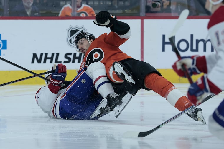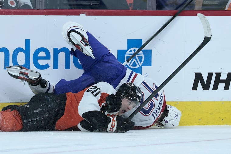 Michkov put a shot on goal that Canadiens goalie Jakub Dobeš pushed into the corner, and Juraj Slafkovský tried to move it up the boards to Jake Evans. But McDonald, who was called a “throwback” to the Broad Street Bullies days by his coach at Northeastern, Jerry Keefe, leveled Evans, and the Flyers kept the puck in.