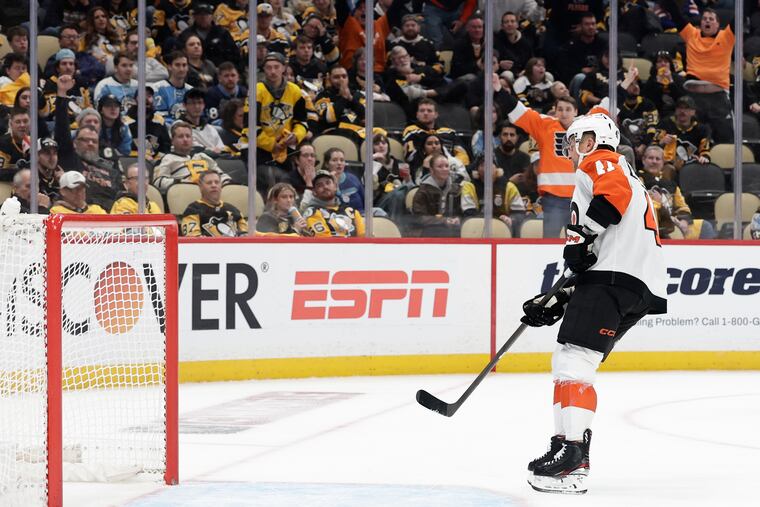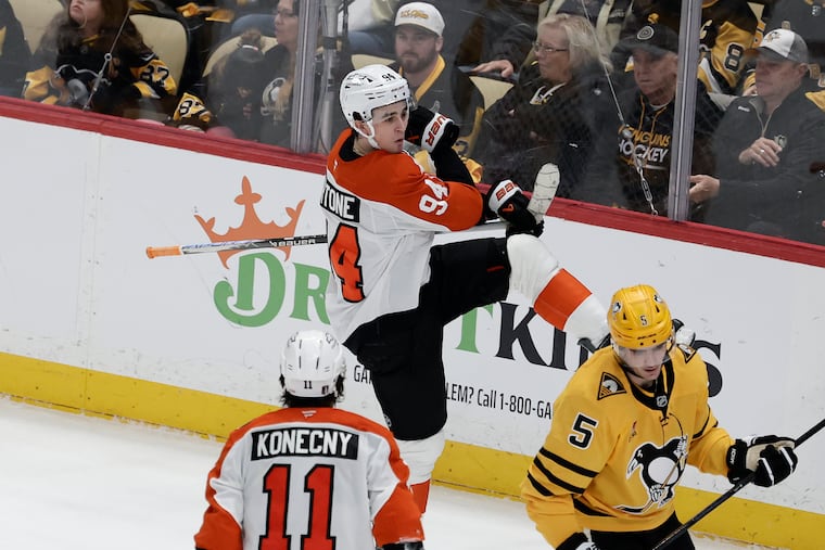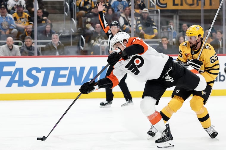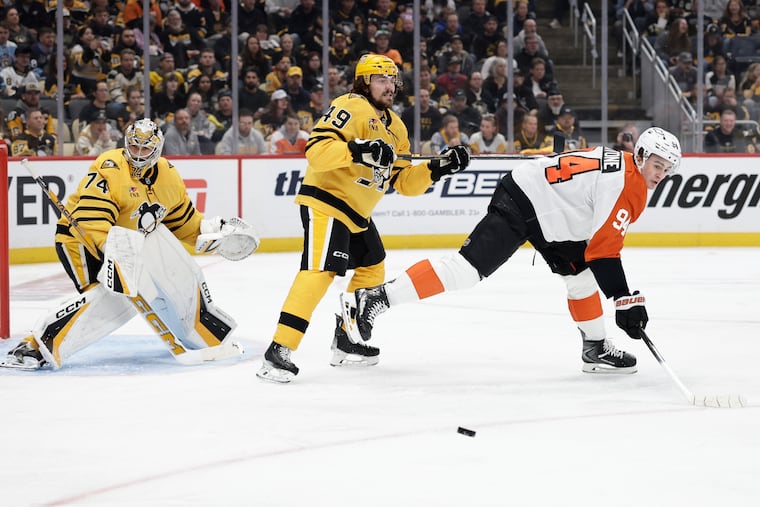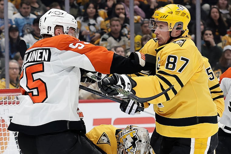 Lord knows, they tried in the third period Monday. Desperate, they fired seven shots at Flyers goaltender Dan Vladař in the frame’s first six minutes, and Vladař stopped them all. He threw his left pad in front of a Samuel Girard wrist shot from the slot, then kicked away a Crosby one-timer from the right circle. He finished with 27 saves. He was perfect, and the Flyers were as close as could be. The Penguins kept coming and coming, and Vladař didn’t care, and ironically enough, it was a power play, on a Travis Konecny interference infraction, that spelled the end for them.