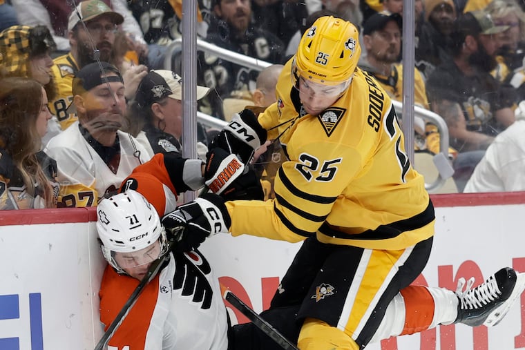 The Flyers beat and beat up the Penguins on Monday night to take a 2-0 series lead. A raucous and playoff-deprived Xfinity Mobile Arena awaits them on Wednesday.
