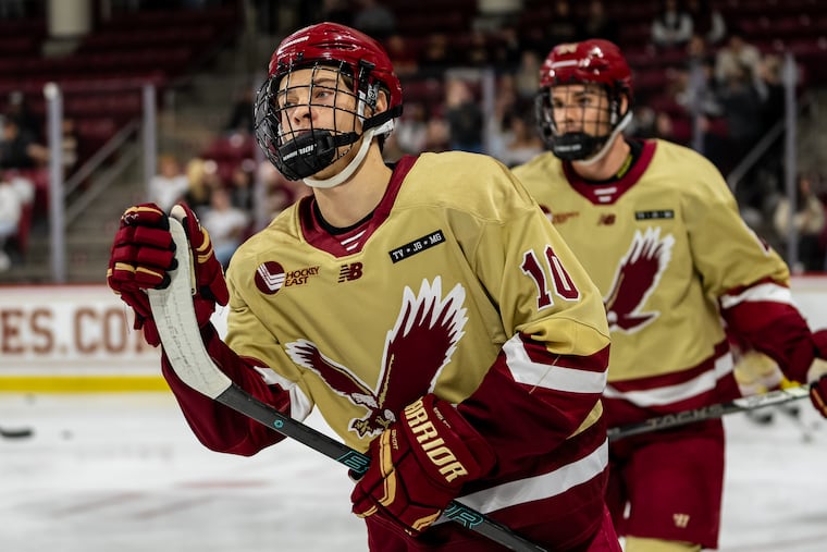 Hagens, who possesses elite skating and playmaking ability, is so dynamic on the ice — he had 37 points in 37 games as a freshman with Boston College — that he and Michkov together would be electrifying. Last summer, after Michkov’s signing was announced, Flyers director of player development Riley Armstrong said, “He’s going to pull all of you guys [the media] right out of your seats.” If it’s Michkov and Hagens? Don’t even bother sitting down.