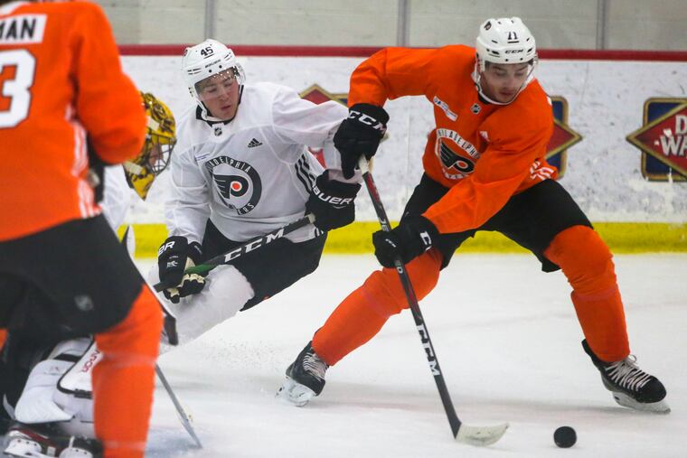As the older brother, Jackson was bigger than Noah for most of their lives. He is listed at 6-foot, 190 pounds, and Noah at 6-1, 179. The hours battling each other in the basement forced Noah to be more competitive. Getting to take their game from the cement floor to the ice has been “special,” Noah says, and he hopes they’ll get to skate together again with the Flyers.