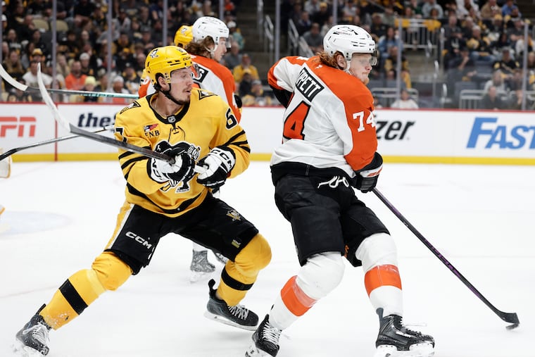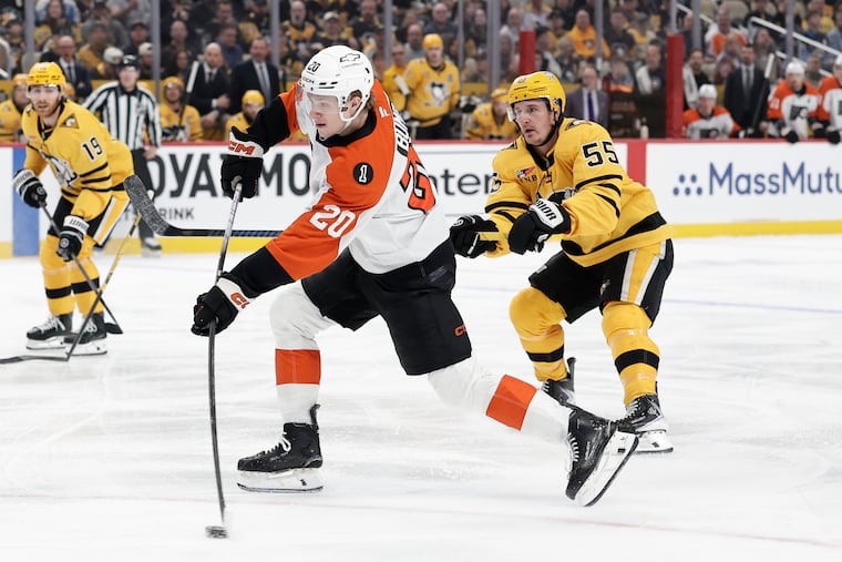The Flyers’ power play went 0-for-2, as did the Penguins. … Defenseman Emil Andrae reentered the lineup after missing Games 2-4 with an upper-body injury and played with Nick Seeler. Noah Juulsen was a healthy scratch. … Michkov was a healthy scratch the first time since he was benched for two games in Florida in November of his rookie season. … Dewar and Bump’s goals were the second-fastest two consecutive playoff goals between the teams in the “Battle of Pennsylvania”. The fastest was in Game 2 of the 2012 conference quarterfinals when Claude Giroux and Chris Kunitz scored six seconds apart.
