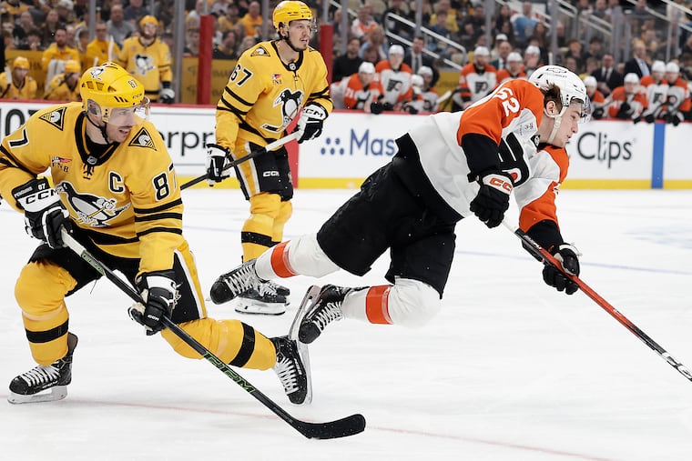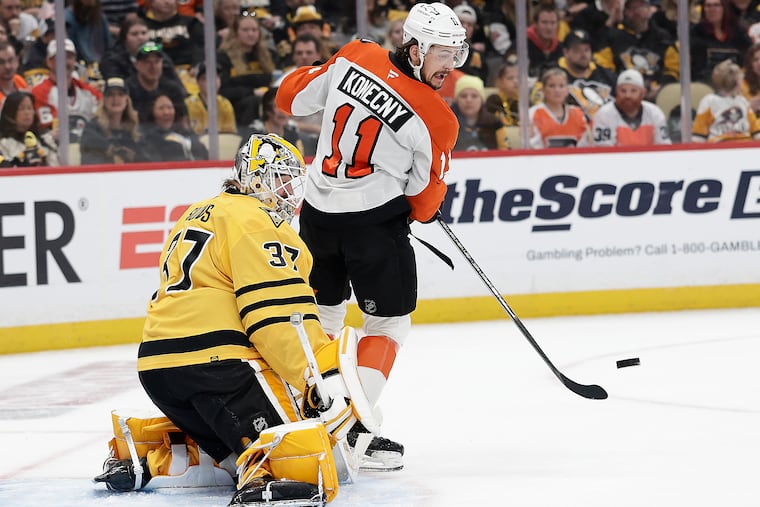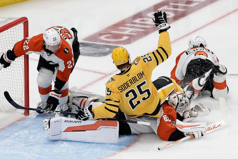 Although the Flyers came out with some oomph, they found themselves in a 1-0 hole for the third straight game. This time, it was Elmer Söderblom sending the puck past the glove of Dan Vladař on the Penguins’ first shot of the game, less than three minutes in.
