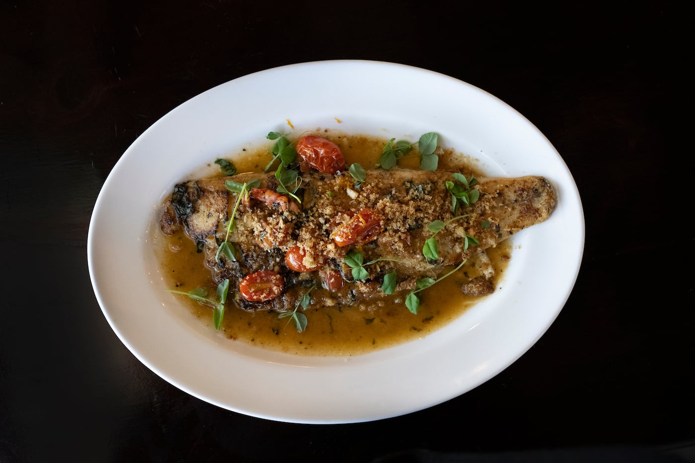 Most importantly, the bistro’s executive chef and co-owner, Salvatore Giambrone, a former Velo Cafe chef who took over in October with partners Easton Reynolds and Michael Beau Ridge, is cooking Italian-themed dishes with gusto, transforming what might otherwise be a generic condo amenity into a destination. Our first visit was for dinner, and I was impressed not only by the uncommonly large entrees, but the bold flavors. A meaty branzino fillet was topped with a brothy butter sauce of citrus and tomatoes and crunchy oreganata crumbs. A half chicken came with the deliciously retro indulgence of rich cream sauce and crumbled bacon. I can also see why the veal Giambrone — 10 ounces of tender cutlets, dusted and browned in gluten-free flour, then lavished with mortadella, truffled burrata, and spicy cherry peppers — is the chef’s self-proclaimed favorite.