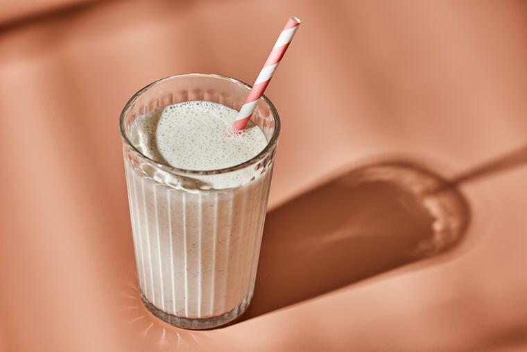 The protein in this smoothie comes from three sources: tahini, almonds, and milk. The tahini, which also supplies a satisfying measure of good-for-you fat, gives the smoothie a rich, thick texture and signature sesame flavor. Sliced almonds add more “nut-rition,” and blend in just enough to yield bits of crunchy texture. Milk provides the liquid needed to whir it all together, as well as shake-like creaminess. (You can use any type of milk you like, but note the difference in protein levels: Dairy and soy milk have about 4 grams of protein per half-cup, whereas almond milk has just 1/2 gram and oat milk up to 2 grams protein per half-cup.) If you opt for a lower-protein milk, you might want to add a couple of extra tablespoons of sliced almonds to make up the protein difference. You could also add protein powder if that’s your thing, but I personally prefer to use more whole-food sources.