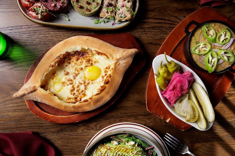 The best of Philly's Georgian spots , this Northeast Philly restaurant and beer garden has become a destination for specialties from this Eurasian country in the Caucasus Mountains. Start with the cold eggplant rolls stuffed with walnut sauce, then go for the excellent khachapuri Adjaruli, a cheese boat topped with an egg yolk that’s mixed-in tableside for added richness. The chicken and lula kebabs are reliably juicy, while the purse-shaped khinkali dumplings are bursting with broth and meat (go for the lamb). There are powerful flavors here, too: The ostri beef stew is subtly layered with aromatic fenugreek and cast-iron pans bring shqmeruli cornish hens basking in garlicky milk. Pair it all with Georgian wines, shots of chacha brandy, and lagers in frosty mugs, then head to the front rooms featuring live music on weekends, and dance the Europop night away beneath spinning disco balls.