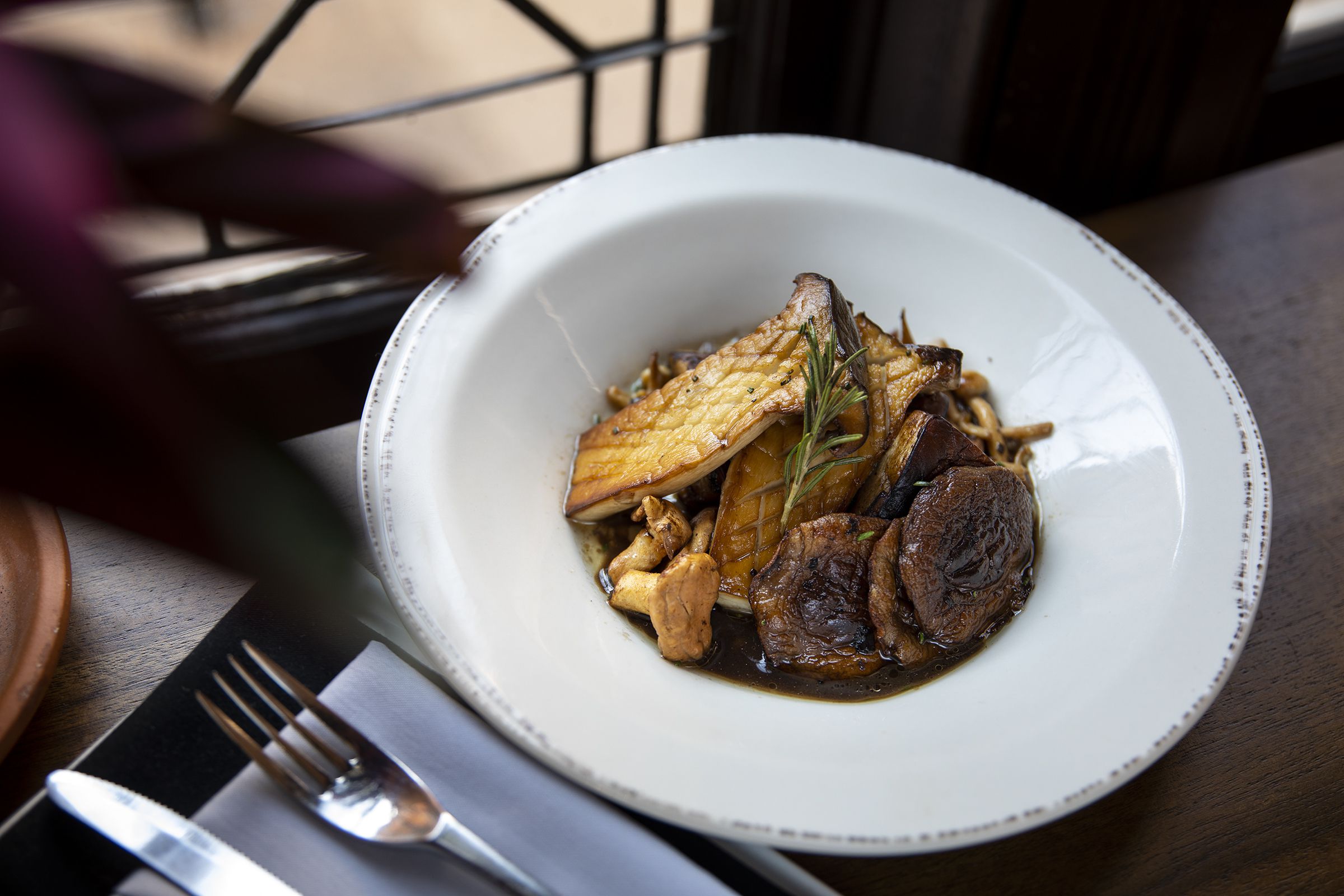Serve the mushrooms whole and carve tableside, using any liquid from the baking dish as a sauce.