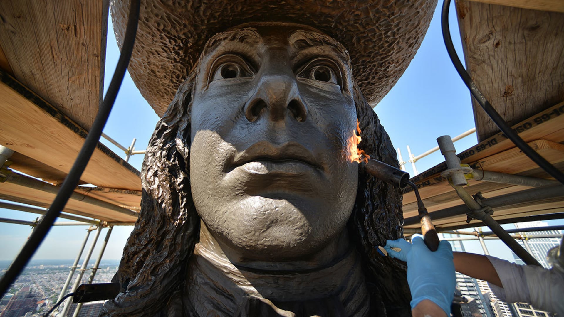 Four teams of horses drew massive plaster sections of the statue up Broad Street to the Tacony Iron & Metal Works. It wasn’t until Thanksgiving 1894 that the head was lifted onto the statue atop the tower, completing Calder’s colossus.