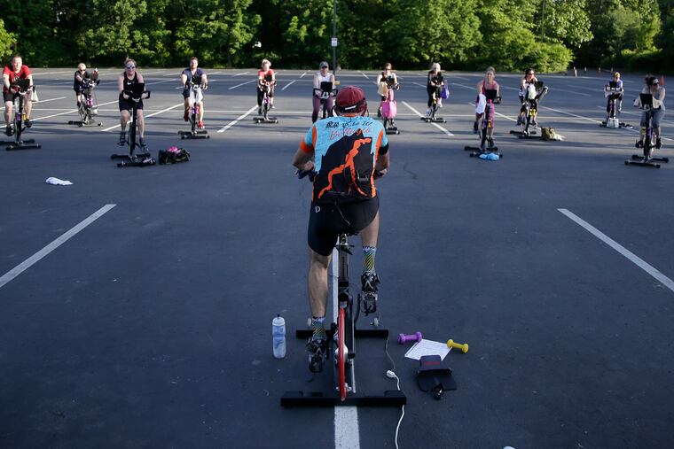 The parking lot of Royal Fitness now serves as a spinning studio and a boot-camp space. On the hot pavement, participants work up more of a sweat than they did three months ago inside the gym.