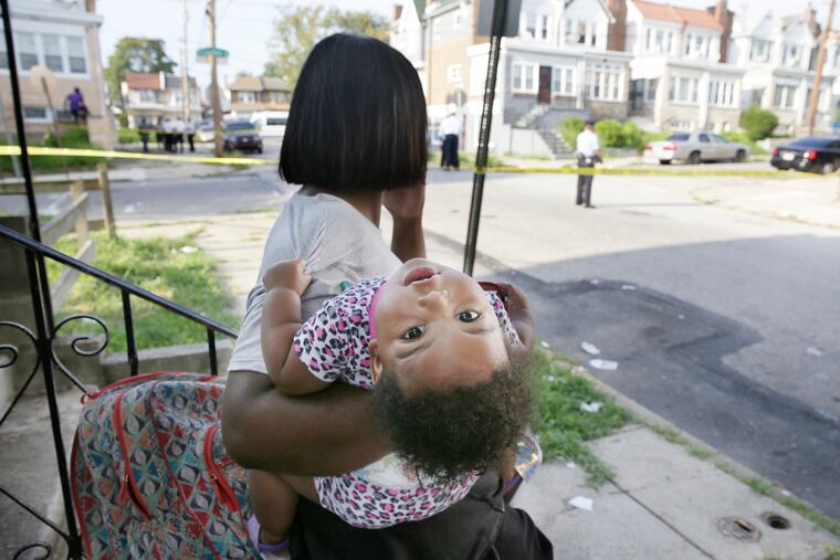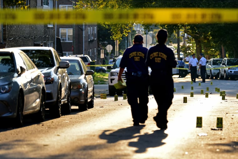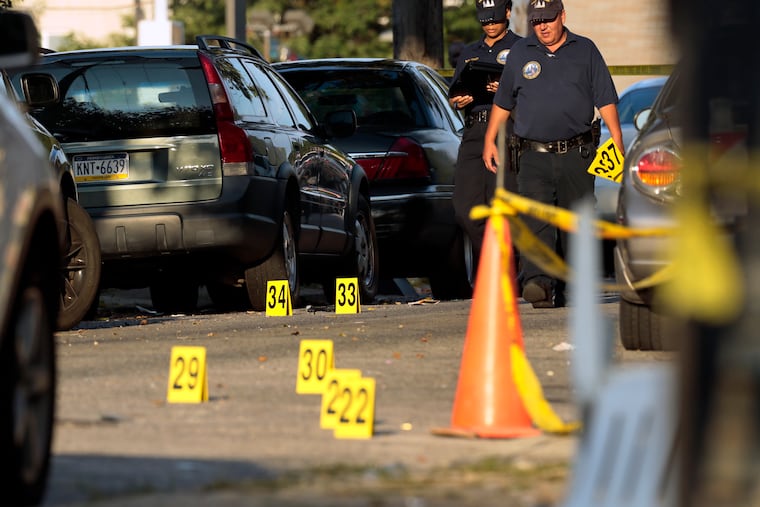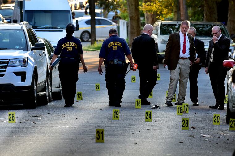 Police placed evidence markers on the street — investigators recovered 26 shell casings; three parked cars were struck by gunfire — as neighbors picked around the caution tape cordoning off 15th and Conlyn. A woman who’d walked blocks out of her way to get around the shooting scene paused, out of breath, on her steps. The woman’s neighbor said she’d been sitting inside when the shots rang out.