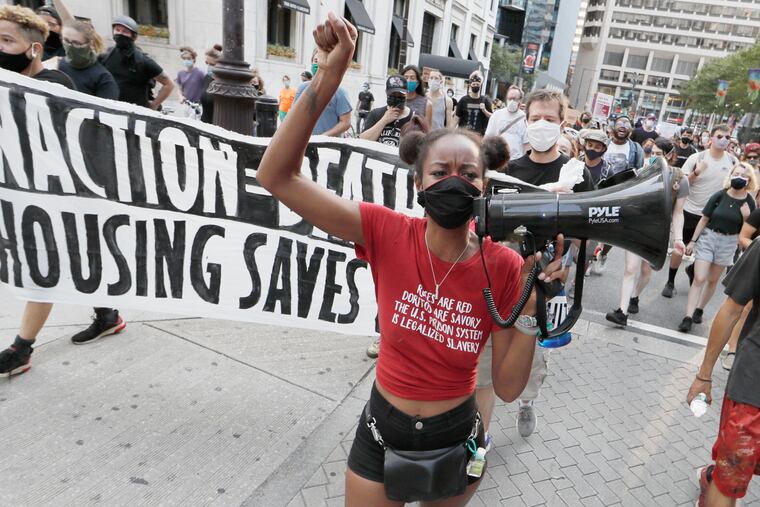 “Help us, be there for us, because we really need it,” one protester said over a speaker system as the group filled the intersection at Third and Race Streets.