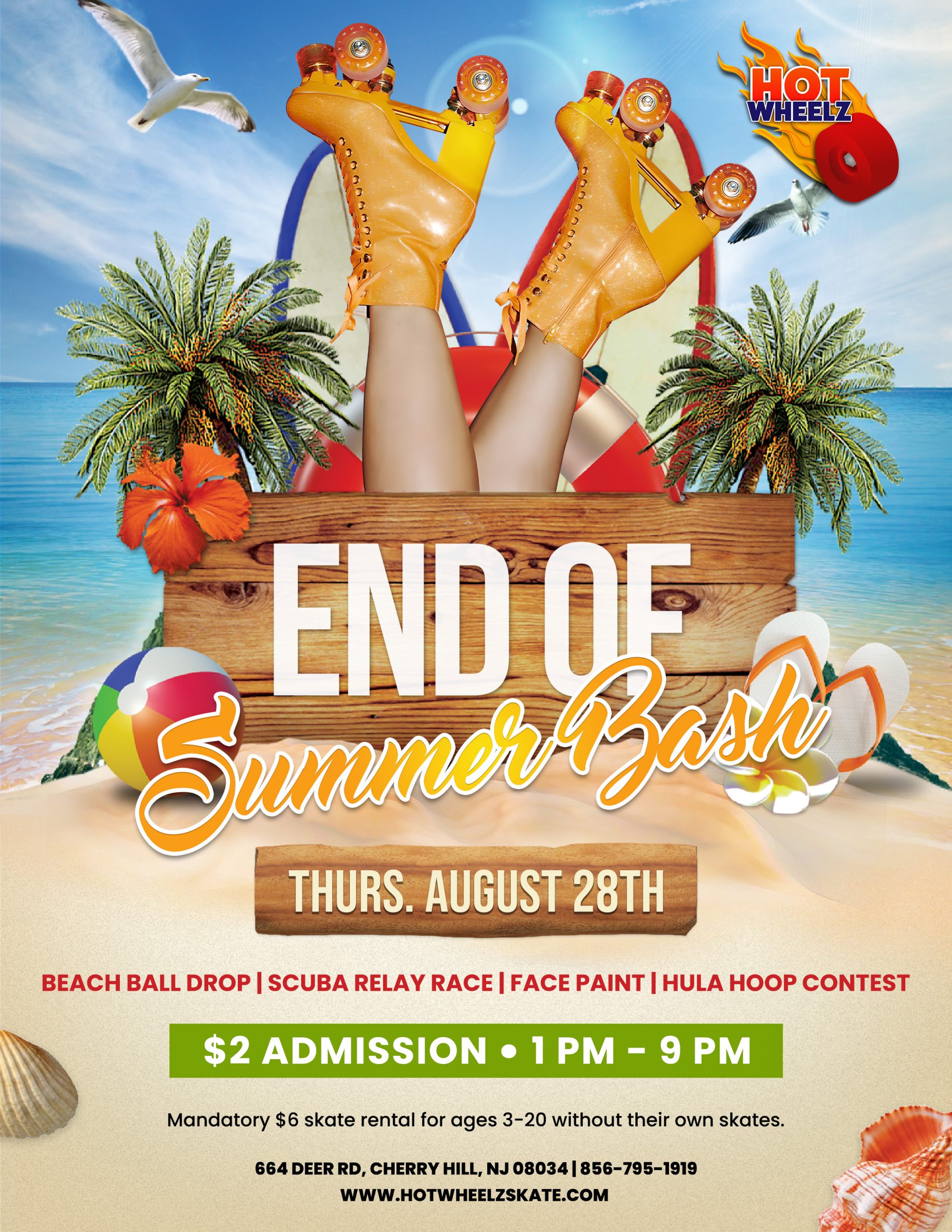 🛼 End of Summer Bash: Celebrate the unofficial end of summer at a beach-themed skate party complete with a relay race, face painting, and a hula hoop contest. ⏰ Thursday, Aug. 28, 1-9 p.m. 💵 $2 plus $6 skate rental 📍 Hot Wheelz