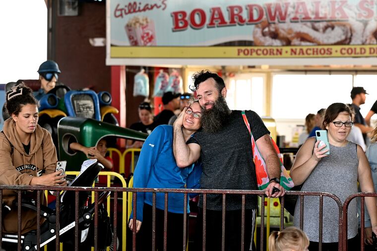 Gabrielle Celluci, 24, of Glen Mills, took a final “nostalgia tour,” with her two siblings, Lisa and Tom, riding all the rides they went on as kids. The blue monorail train where you pay a dollar for the animatronic figures to play country tunes, the log flume, the Moby Dick ride. “We’ve been coming here since we were babies, in strollers,” she said, as the group posed in front of the Gillian’s sign on the Boardwalk.