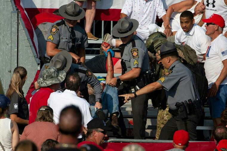 Secret Service agents rushed toward Trump and soon whisked the former president, whose face and right ear were bloodied, from the stage. Trump, who later reported he was shot in the ear, was said to be “fine” and safe and was being treated for his injuries.