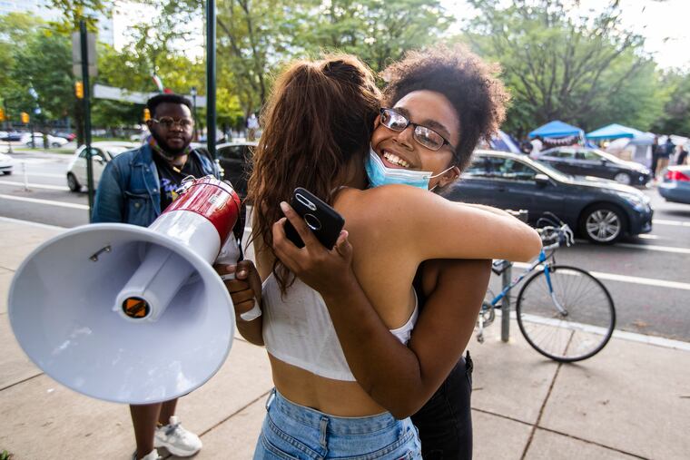 Outside the federal courthouse Thursday, a group of around 50 supporters of the encampments gathered. Alternating between chants for “housing now” and “Black Lives Matter,” they marched to the Parkway, momentarily blocking traffic, and escorted by a small group of Philadelphia police officers on bikes and in vehicles.