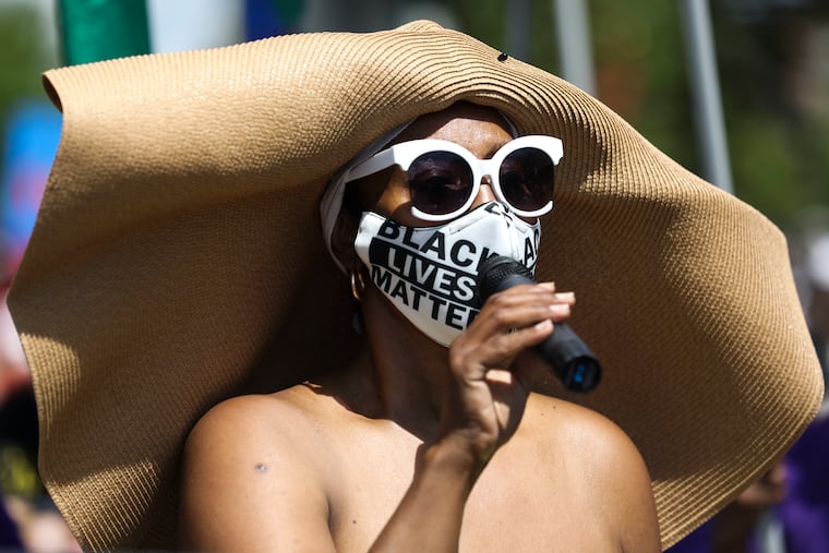 More than 500 demonstrators gathered in LOVE Park on a stiflingly hot Father’s Day to support the Philly Queer March for Black Lives, calling for justice and fairness and denouncing the racism that permeates American life.