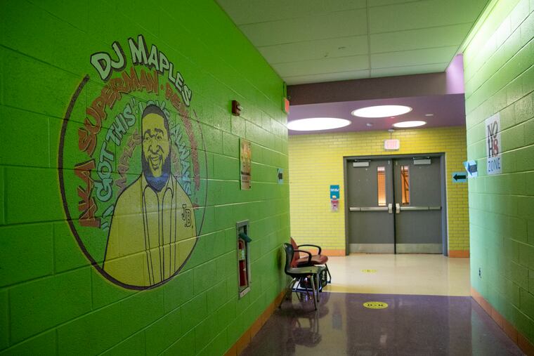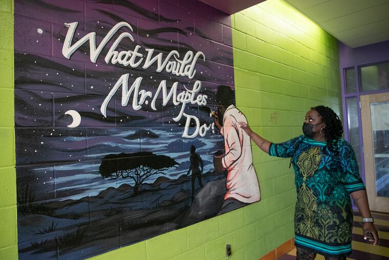 The murals at Barry, at 59th and Race in West Philadelphia, are a memorial to Mark Maples.