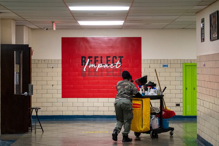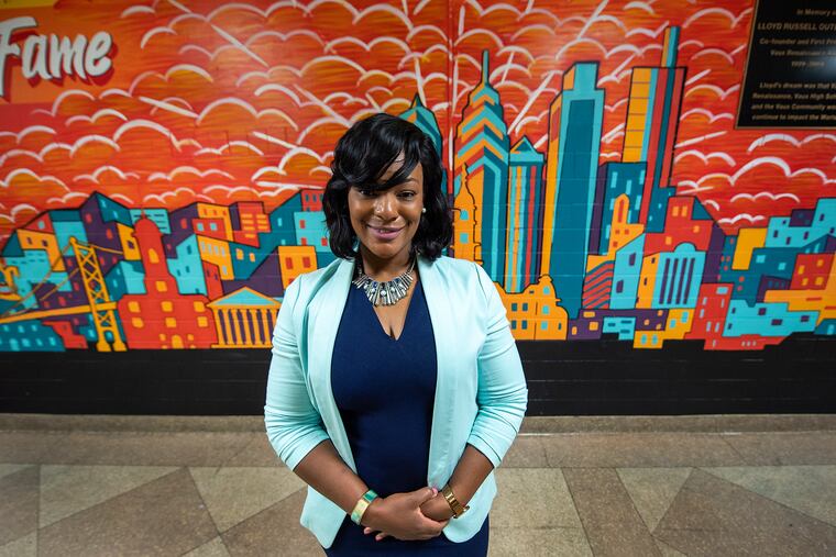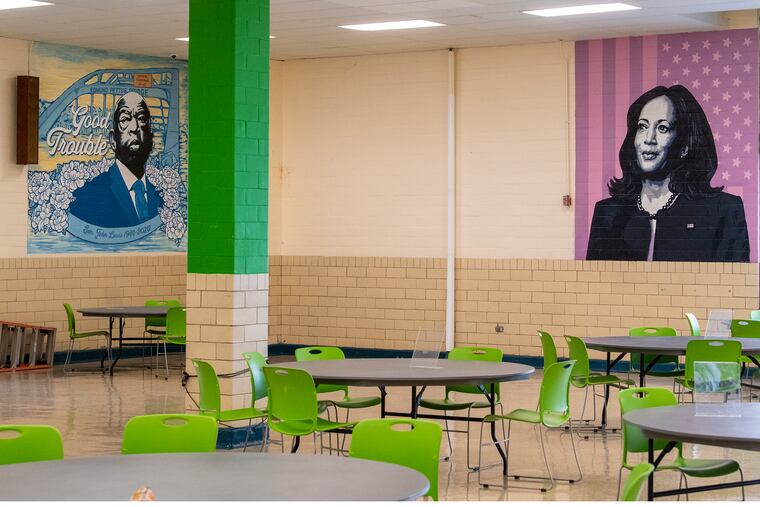 McMillan had a $8,000 school beautification budget and the seed of an idea: filling the building with images — featuring idols like Kamala Harris and Chadwick Boseman — that resonated with her students. And she wanted to foster school spirit at Vaux, which reopened as a reimagined high school after being closed for several years.