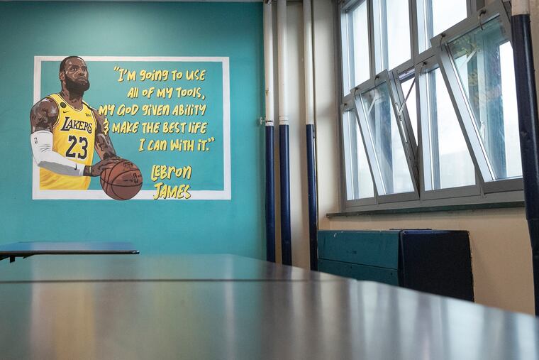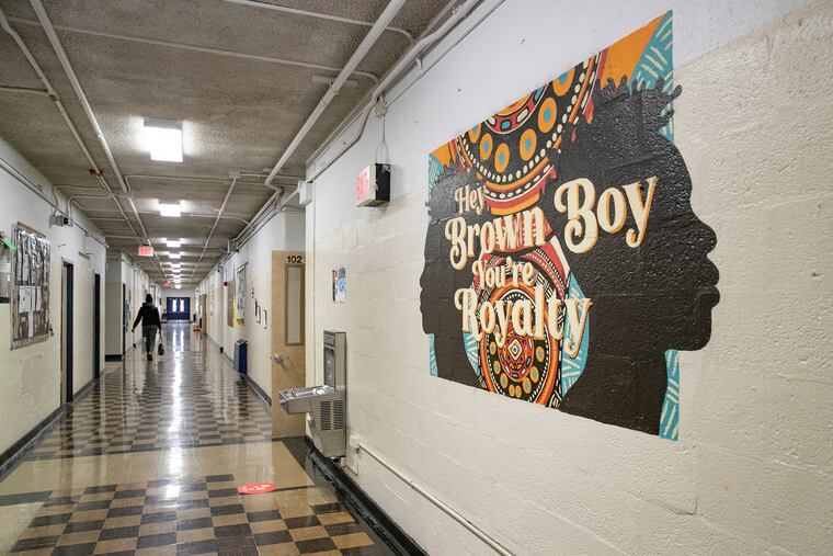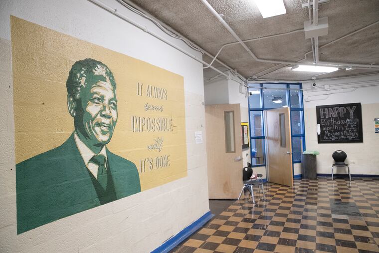 There are Will Smith (of course there’s Will Smith — it’s West Philadelphia) and Nelson Mandela. Near a classroom is a rainbow heart rimmed in black, with “In This School, Everyone Is Welcome” lettered in white.