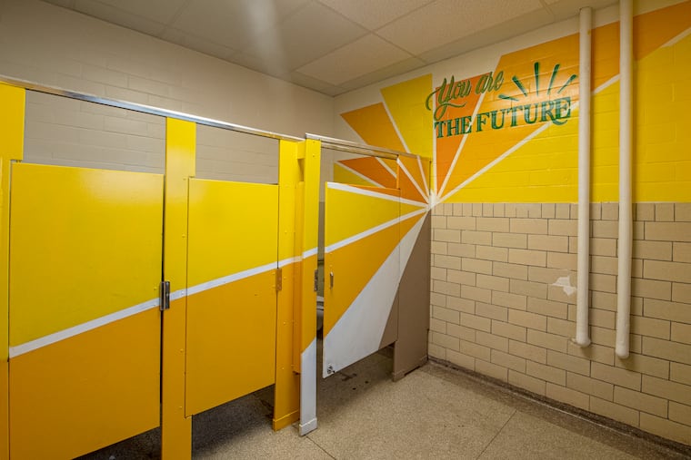 Lamberton isn’t the only city school with murals adorning its hallways and even bathrooms — the Mural Arts program works in schools across the city — but it’s one of a trio of Philadelphia School District buildings with vibrant, of-the-moment wall paintings by the local artist Willow Orr.