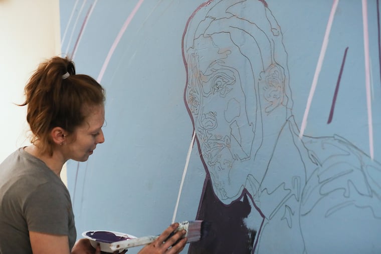 Last fall, McMillan let Orr loose on the vast building at 23rd and Master in North Philadelphia, making murals in the cafeteria and in bathrooms (”important transitional space,” Orr said), on stairwells, and in hallways. There are inspirational quotes — “Your mistakes don’t define you” and “This is going to be epic” and a sunny yellow sunburst. There’s a smiling Rosa Parks in a field of purple, red, and blue swirls.