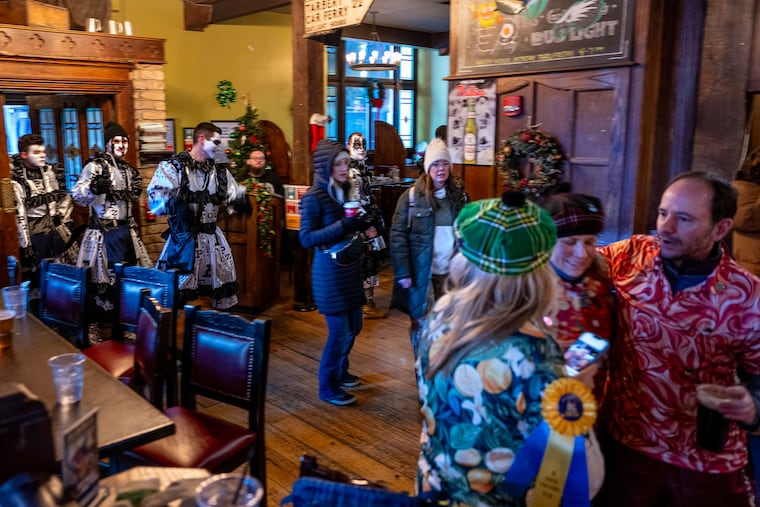 Dressed in handmade, bedazzled Colonial-era costumes, Joe Bongard, 47, and his teenage daughter, Lucy, were the first Mummers to march.