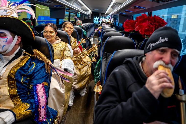 “It’s all about riding the train downtown to see the Mummers,” Finnegan said, mid-strut. “My wife thinks I’m crazy.”
