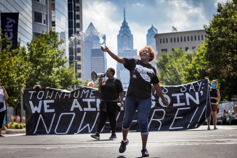 Wearing T-shirts that read “Stop displacing Black communities,” the protesters also stopped in front of the president’s house of the University of Pennsylvania, which had a role in forcing out Black residents when the university expanded more than 50 years ago. Some Penn students and staff had previously called on the university to try to help stop the sale.