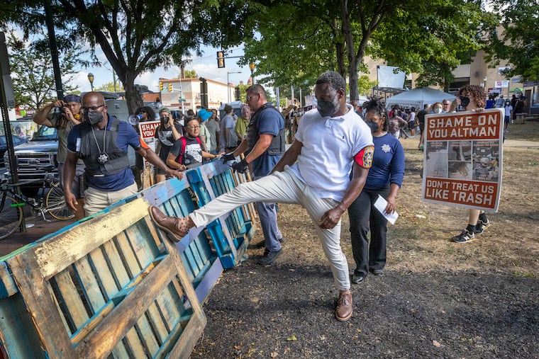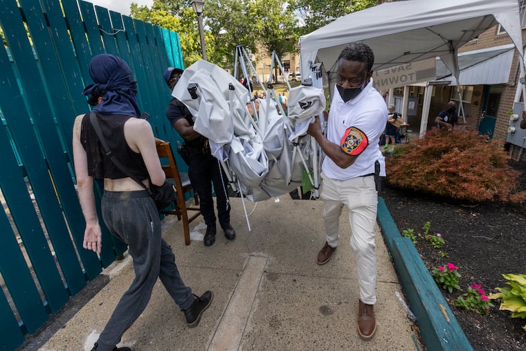 During the clearing, two altercations took place between police, who appeared to push demonstrators, and the protesters. Philadelphia Police Department officers did not make any arrests or issue any citations, a department spokesperson said.