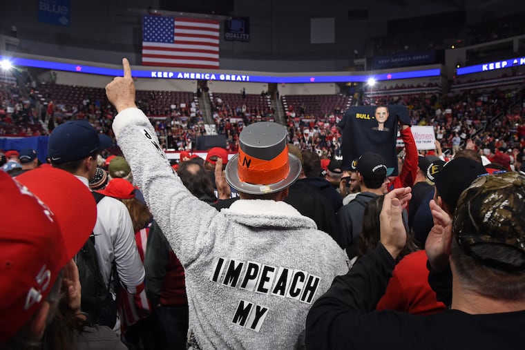 HERSHEY, Pa. — Supporters waiting for President Donald Trump to arrive here Tuesday scorned the articles of impeachment introduced by House Democrats, predicting that the Republican-controlled Senate would quickly acquit him and the whole episode would be a mere hiccup on the president’s road to reelection.