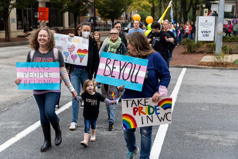 Among LGBTQ flags, rainbow face paint, signs, and cars honking in support, 500 people gathered at the Chester County History Center on Saturday to celebrate West Chester’s first OutFest.