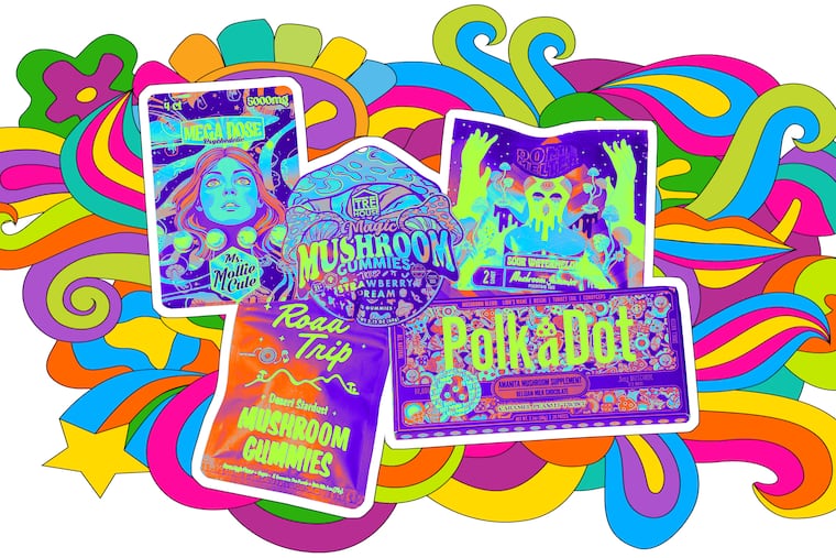 Philadelphia-area smoke shops are a wonderland for so-called magic shrooms. The products, promising an “otherworldly” high, lure customers in with late-1960s-style psychedelic packaging and clever names.
