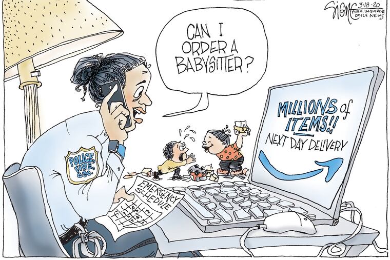 Childcare for public servants like police, fire, and sanitation workers with changing schedules is never easy. But during the current emergency, with schools and daycares shut down, babysitting is harder than ever to figure out. One young mother I know was lucky enough to have her in-laws drive 2,943 miles from California to help out. If only you could order a healthy, ambulatory, and willing grandparent on Amazon!