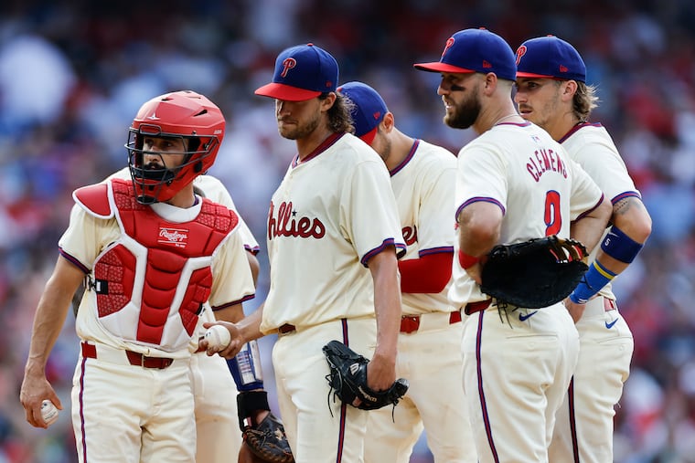 Their pitching kept it close. Aaron Nola gave the Phillies another quality start, throwing 6⅔ innings, allowing three earned runs on six hits with no walks and nine strikeouts. Matt Strahm entered in relief with a runner on second and two outs, and allowed a single to Jazz Chisholm Jr. to tack an earned run onto Nola’s line. Strahm struck out Bryan De La Cruz to end the inning.