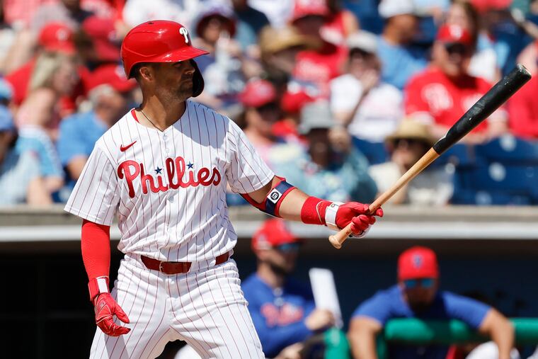 Manager Rob Thomson said his decision to sit the left fielder — in favor of right-handed utility man Whit Merrifield — was that the Phillies have more options now against left-handed pitching.