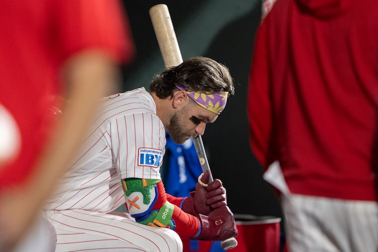 After the Phillies got it to within 7-4 in the eighth, Kyle Schwarber singled to bring up Bryce Harper as the tying run. Harper worked a six-pitch at-bat against Thielbar before striking out on a low-and-away fastball.