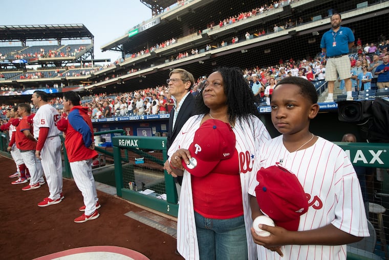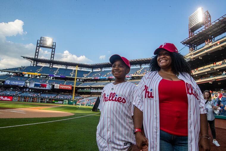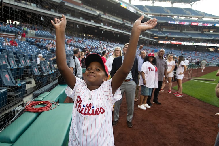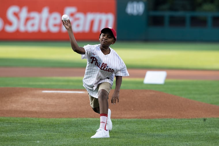 Elijah nodded. He had been practicing a little bit earlier in the day, in front of the Art Museum. The 11-year-old threw five well-placed pitches to his aunt, all fastballs. In a few hours, he’d be on a big-league mound, throwing the ceremonial first pitch for the Phillies, but he wasn’t nervous. He has his great-grandfather’s natural athleticism.