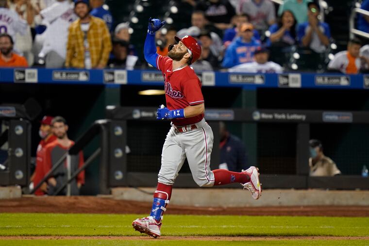 NEW YORK -- Bryce Harper blew kisses to Mets fans after hitting a home run here Friday night.