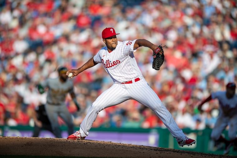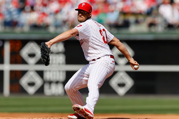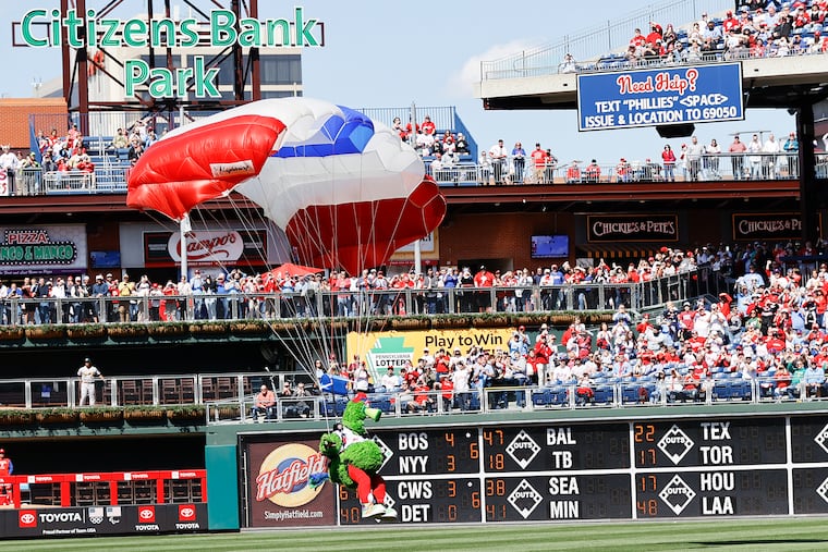 Zack Wheeler topped 50 pitches in four innings Thursday in an intrasquad game in Clearwater, Fla. He’s on track to make his first start of the season Tuesday night at home against the New York Mets. ... In a grand finale to the pregame ceremonies, the Phanatic parachuted into Citizens Bank Park. ... Dan Baker, celebrating his 50th season as the Phillies’ public-address announcer, threw a ceremonial first pitch. ... Kyle Gibson will start Saturday against A’s left-hander Cole Irvin, the former Phillies prospect.